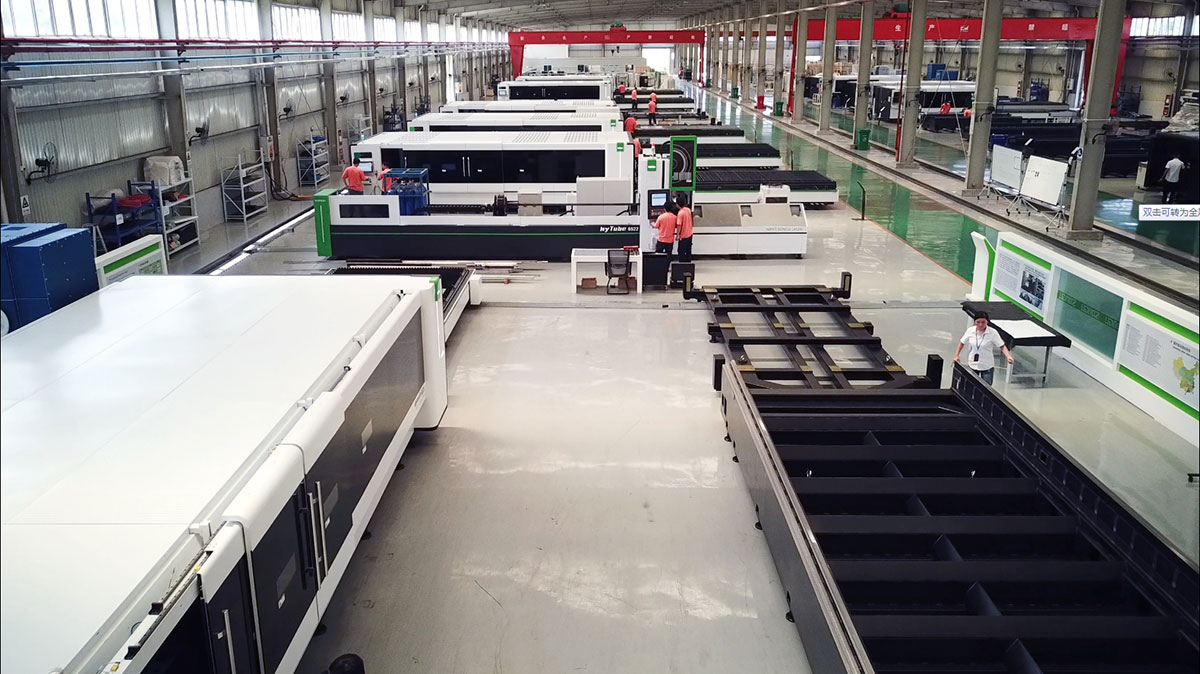 在卓總的陪同下,長(zhǎng)堀先生一行先后參觀了徐州生產(chǎn)基地的鋼材開(kāi)料車(chē)間、機(jī)床焊接車(chē)間、精密機(jī)械加工車(chē)間、熱處理車(chē)間、大型機(jī)床龍門(mén)加工車(chē)間和金屬激光切割設(shè)備整機(jī)裝配調(diào)試車(chē)間等。在參觀過(guò)程中,卓總向長(zhǎng)堀先生介紹,自2021年以來(lái),大族粵銘激光集團(tuán)一次性向徐州生產(chǎn)基地追加投資1億元人民幣,新建了現(xiàn)代化智能生產(chǎn)車(chē)間35000平米,購(gòu)置了數(shù)十臺(tái)套行業(yè)內(nèi)領(lǐng)先的智能化龍門(mén)數(shù)控加工中心、機(jī)床噴涂生產(chǎn)線、熱處理設(shè)備和精密機(jī)械加工設(shè)備,招聘并精心培養(yǎng)了100多名熟練的高素質(zhì)技術(shù)工人。從而使徐州生產(chǎn)基地具備了大型金屬激光切割裝備從開(kāi)料、焊接、熱處理、機(jī)加工、表面噴涂到整機(jī)裝配與調(diào)試的全流程自有可控的大批量生產(chǎn)制造能力,建立起了全流程可掌控的產(chǎn)品質(zhì)量管理體系,從根本上確保了松谷智能裝備金屬激光切割裝備的快速交付能力和過(guò)硬的產(chǎn)品品質(zhì),為徐州生產(chǎn)基地后期的高質(zhì)量發(fā)展奠定了堅(jiān)實(shí)的基礎(chǔ)。